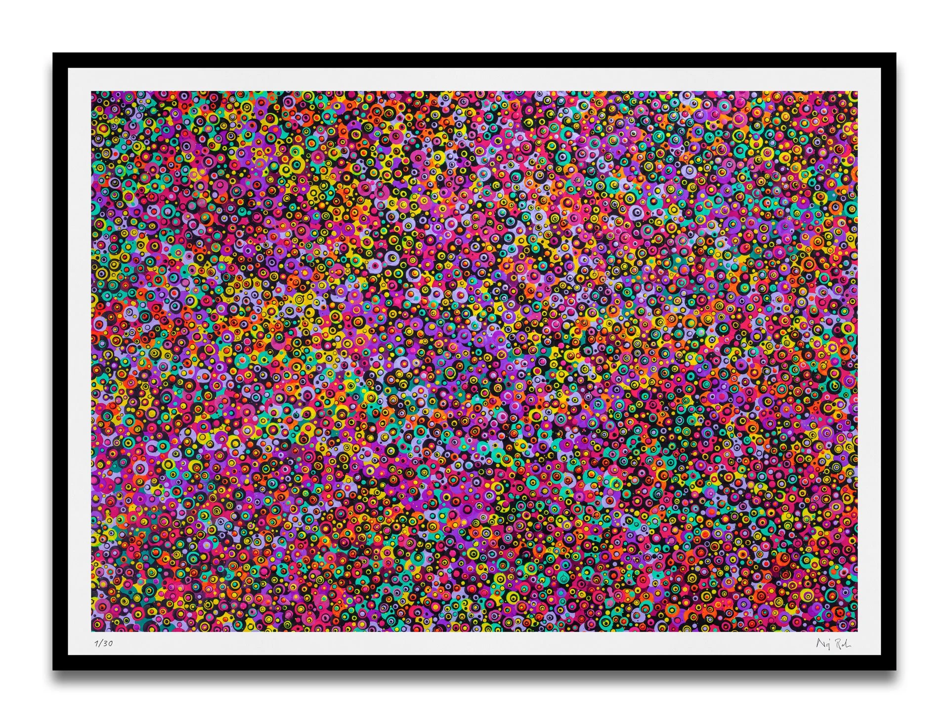 Each Black Multicolour print is produced using the giclée method on 308gsm Hahnemühle Photo Rag – a museum-grade, 100% cotton paper renowned for its soft texture, rich black saturation, and natural matte finish. Favoured by professional photographers and art collectors alike, this vegan-certified paper delivers exceptional colour depth and detail, making it the perfect medium for Noj Barker’s intricate dot work.